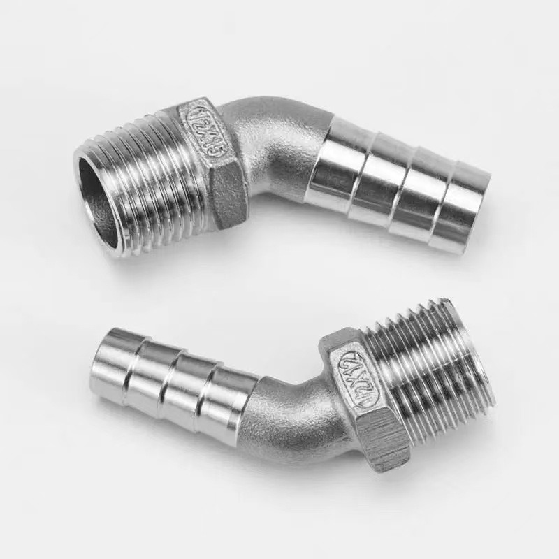 Ang 45-Degree Hexagonal Male Thread Elbow Fitting gikan sa Shenchi Factory espesipikong gi-engineer alang sa mga aplikasyon nga nanginahanglan usa ka hapsay, 45-degree nga pagbag-o sa direksyon kung magbalhin gikan sa rigid piping hangtod sa flexible hoses. Ang gawas nga hilo nga tumoy niini hugot nga nag-screw ngadto sa katugbang nga internally threaded fitting, nga nagsiguro sa usa ka leak-proof seal sulod sa metal nga sistema sa tubo. Ang barbed hose end, sa makausa gisulod sa usa ka flexible hose, naggamit sa sunod-sunod nga reverse-angled barbs aron lig-on ang pagkupot sa sulod nga bungbong sa hose; kung gisiguro sa usa ka hose clamp, kini nagmugna usa ka lig-on, anti-slip nga koneksyon. Ang 45-degree nga angled nga disenyo nagpamenos sa fluid flow resistance kumpara sa standard 90-degree nga mga siko, nga naghimo niini nga sulundon alang sa mga sistema sa piping diin ang pagpaminus sa pagkawala sa presyur usa ka kritikal nga kinahanglanon. Dugang pa, ang hexagonal nga lawas nga nahimutang sa sentro sa fitting nagpadali sa dali nga pag-access sa himan ug makapahimo sa dali, episyente nga pag-install.