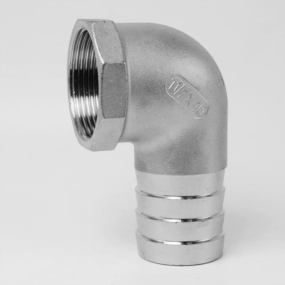 2. Husto nga Pag-instalar: Alang sa sinulid nga tumoy, iputos ang mga hilo gamit ang sealing tape sa dili pa i-screw ang haom sa lugar. Para sa barbed end, i-slide ang hose paubos ngadto sa base sa barb ug i-secure kini pag-ayo gamit ang stainless steel hose clamp nga gibutang ibabaw sa barb ngipon. Ang pamaagi sa pag-instalar parehas alang sa 90-degree nga male-threaded elbow ug 90-degree nga female-threaded elbow, nga nagsiguro sa usa ka yano ug makanunayon nga proseso.