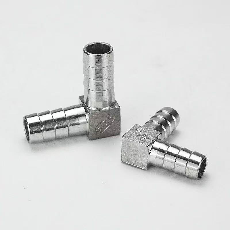 Ang duha nga mga tipo adunay 90-degree nga angled nga disenyo nga adunay parehas nga mga detalye alang sa mga tumoy sa barbed pagoda. Anaa sila sa usa ka pagpili sa mga materyales: 304 stainless steel, 316L stainless steel, o brass. Ang yawe nga kalainan naa sa pamaagi sa koneksyon: ang una nagpadali sa usa ka direkta nga koneksyon sa hose-to-hose, samtang ang ulahi nagpadali sa usa ka transisyonal nga koneksyon tali sa usa ka hose ug usa ka piraso sa kagamitan, sa ingon nagtanyag nabag-o nga mga kapilian sa pagpili nga nahiangay sa lainlaing mga senaryo sa pag-install.